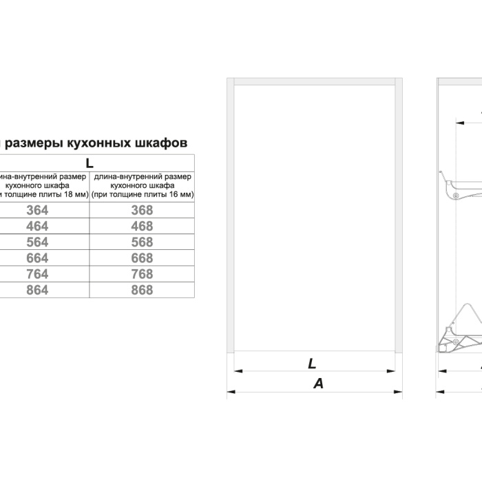Сушка может монтироваться в мебель с толщиной боковых стенок как 16 мм, так и 18 мм.