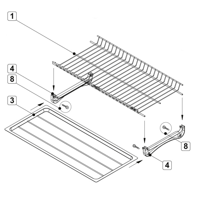 Двухуровневая и вместительная проволочная сушка в верхнюю базу SU03 надёжно устанавливается в короб без дна за счёт специальных алюминиевых трубок с пазом под крепление задней стенки мебельного короба.