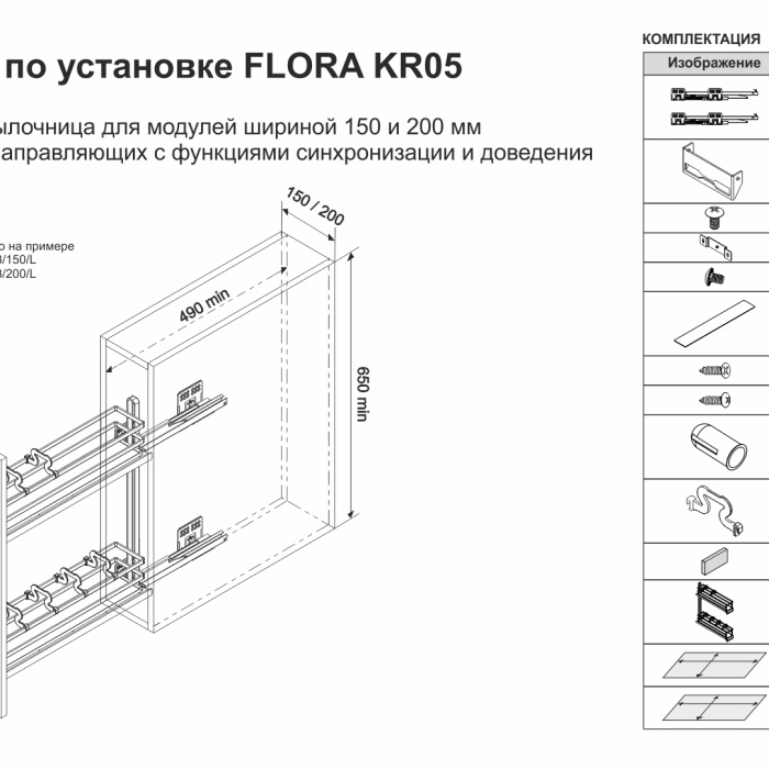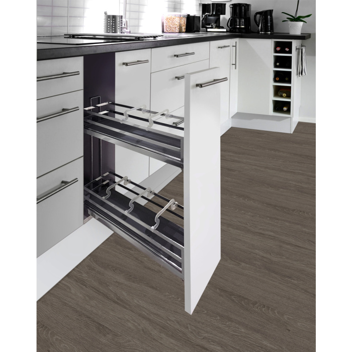 FLORA — это современная комфортная бутылочница с амортизацией, предназначенная для удобного хранения емкостей различной высоты в модулях шириной 150 или 200 мм. Модель обладает стильным европейским внешним видом, плоской формой боковых прутков корзин. Сплошное дно с антискользящим покрытием и дополнительные съемные делители FLORA гарантируют максимальную устойчивость хранимой утвари на обоих этажах. Кроме того, дно можно легко снять для чистки и мытья. FLORA может быть установлена на левую или правую боковину модуля с помощью направляющих нового поколения с синхронизацией и доводчиком длиной 450 мм, которые обеспечивают легкое, равномерное и бесшумное движение бутылочницы. Система обеспечивают удобную трехмерную регулировку положения фасада.