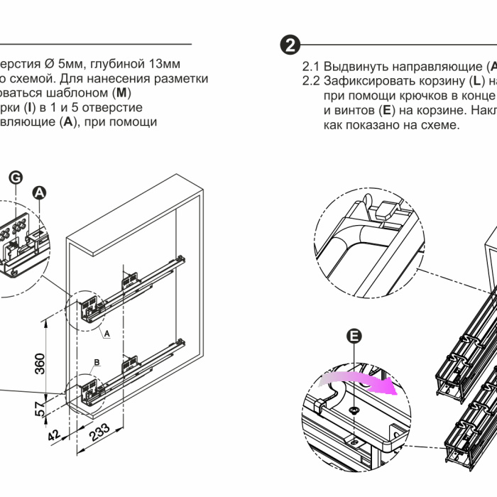 В комплекте с изделием поставляется специальный шаблон присадочных отверстий, который поможет точно определить место для крепления корзины. Шаблон является дополнением к осн