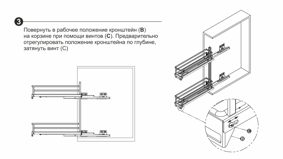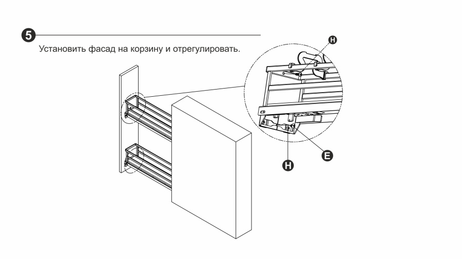 Модель обладает удобной регулировкой фасада в трёх плоскостях, стильным европейским внешним видом, плоской формой боковых прутков корзин. Сплошное дно с антискользящим покрытием и дополнительные съёмные делители FLORA гарантируют максимальную устойчивость хранимой утвари на обоих этажах. Кроме того, дно можно легко снять для чистки и мытья.