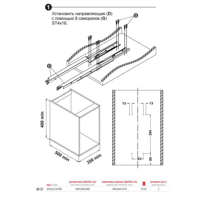 Выдвижная корзина под мойку TWIN KR16/2/3/300
