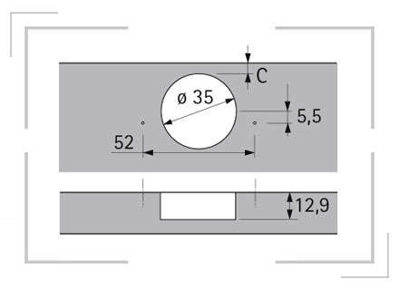 •Для накладной, вкладной навески двери и навески на среднюю стенку