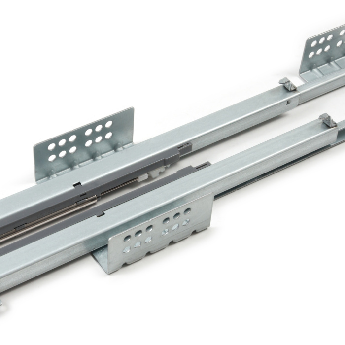 Направляющие B-Slide DB7774 с доводчиком частичного выдвижения насадного монтажа с минимальным усилием на открывание мебельного ящика ≈ 26 N. Облегчённое выдвижение сделано для максимальной интеграции с гарнитурами малых форм. DB7774 идеально подойдут для прихожих, гостиных, спален и другой компактной мебели с небольшой глубиной выдвижных ящиков.