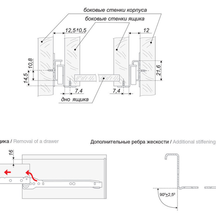 Направляющие роликовые для мебельных ящиков. Выдвижной механизм одинарный, неполного выдвижения, с самозатягиванием, двойным остановом и защитой от выкатывания. Форма профиля имеет дополнительное ребро жесткости. Ролик цельный, материал ролика POM.