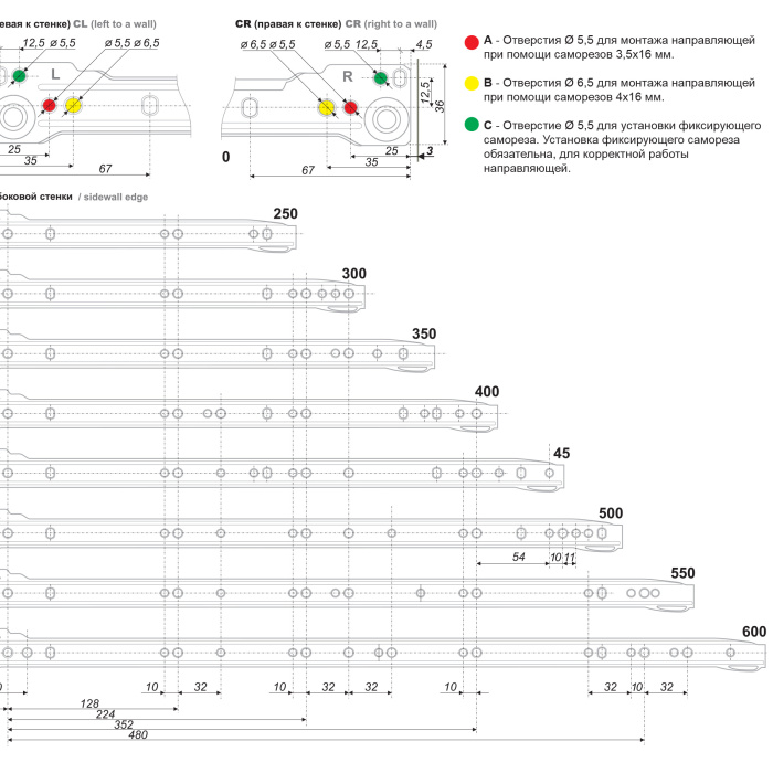 Направляющие роликовые для мебельных ящиков. Выдвижной механизм одинарный, неполного выдвижения, с самозатягиванием, двойным остановом и защитой от выкатывания. Форма профиля имеет дополнительное ребро жесткости. Ролик цельный, материал ролика POM.
