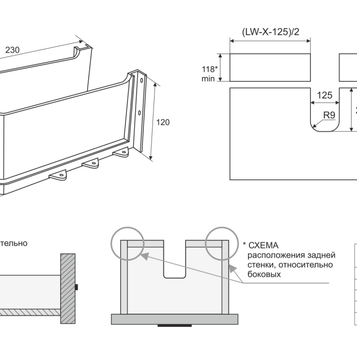 SBH29 — держатель дна и задней стенки для выдвижного ящика под мойку с прямыми боковинами средней высоты.