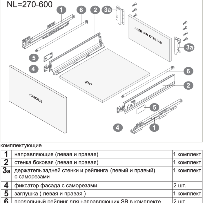 Тип конструкции направляющих: Системы выдвижения с двойными металлическими боковинами